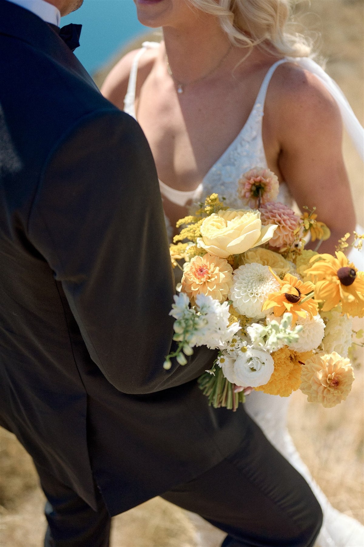 A beautifully hand‑tied bouquet, sized just right for adventure: compact enough to tuck beside you on a helicopter ride, yet lush enough to shine in photos.